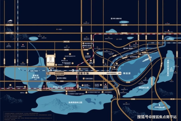③梦想·中央公园:岂止中轴,更在湖边同频世界城市中轴线,以TOD开发模式为核心,紧扣“生态体系、活力典范、人文价值、立体都市”等五大核心功能,建设“梅溪湖中轴客厅”。项目位于规划约2400亩雷锋湖中央公园头排,构筑新一代贵雅湖居生活。