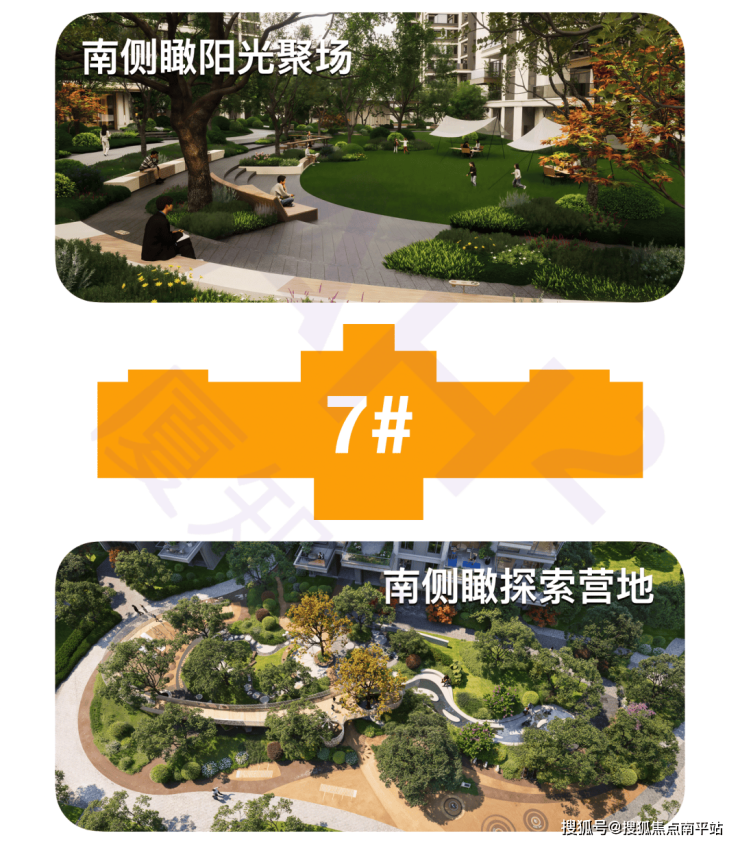 7号楼南向直面探索营地,北侧则瞰阳光聚场,在家中即可饱览中庭精华造景,视野感受非常好。