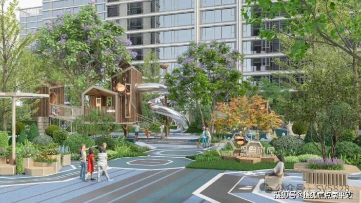 ※ 云耕月作:林荫织翠,自然花园;潺流脉动,趣味器械点缀,构筑鲜明灵动的旱溪秘境。