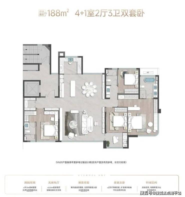 建面约 188㎡户型得房率高达约 94.12%,实际面积超218㎡, 将豪宅圈的角力,拉到了 “大气层”!