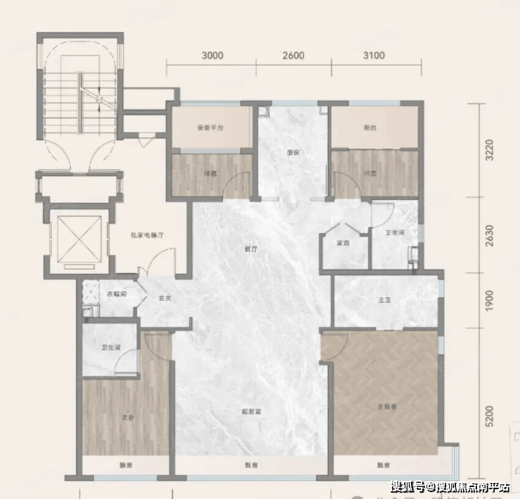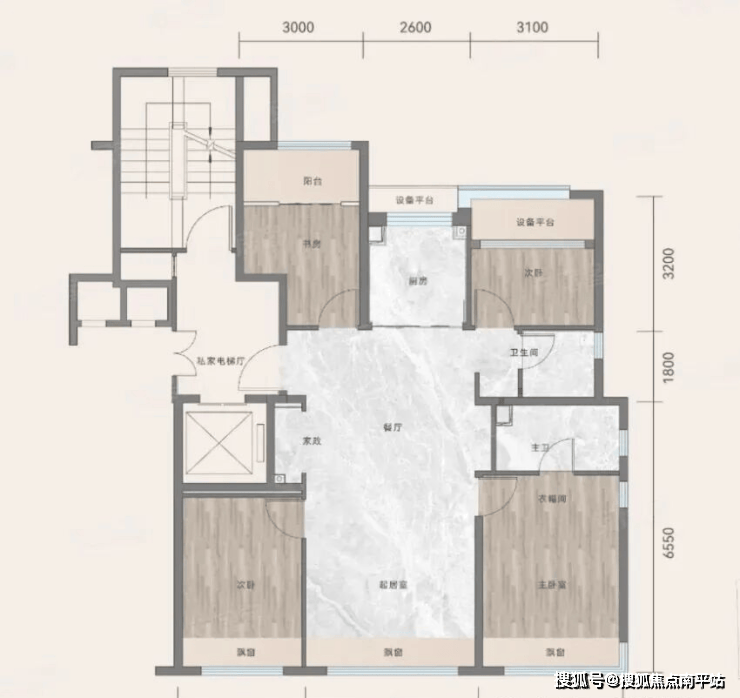 158户型相比的126户型大格局基本一致,就是客厅是5.5米宽厅了。电梯贯通梯,多了私家电梯厅和入户玄关,归家更私密,仪式感更强了。电梯厅还是个暗厅,要是明厅就好了。