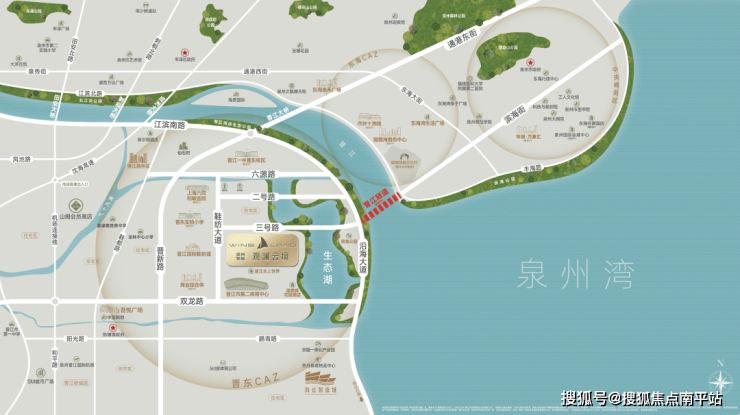 泉州发展·观澜云境一线紧邻约360亩生态湖境及超1800米滨海公园无垠海岸线,项目约600米范围内,覆盖园-湖-海三重景观资源,在繁华之中,贵隐静谧水岸。