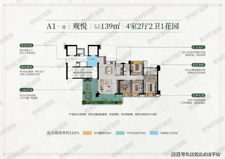 通过已曝光的楼栋分布及户型图来看,泉州发展·观澜云境共包含了高层、洋房、联排、别院四大类产品,可以做到户户观景。