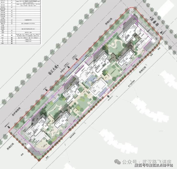 项目共规划了4栋30-31层的高层住宅、2栋44层的超高层住宅和部分社区底商。总用地面积2.58万方,总建筑面积约8.97万方,容积率2.49,户数402户,车位配比1∶1.07。