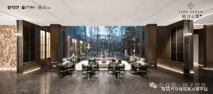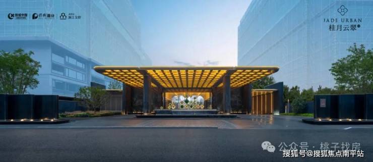 约50米宽幅恢弘大门庭、环岛式酒店落客区、朗阔挑高大堂,塑造层层叠翠归家仪式,辉映江南的封面,尽显翡翠的昭示感。
