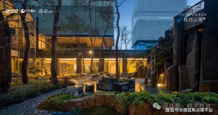 特邀近180年历史日本植弥加藤造园社共创设计,以“千里江山图”为灵感取境,巧妙运用景观高差处理手法打造下沉式庭院,围合一方大美隐于内的“泛会所空间”。