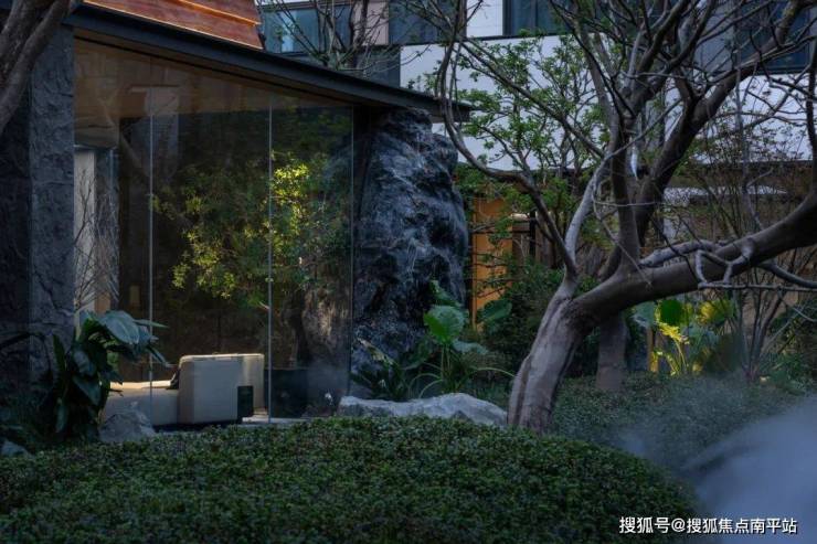 涧山观奕将雅奢的氛围融于建筑,通过红洞石以及艺术原石的点缀,彰显独特的雅致品味和视觉效果,在典雅的风格中传递持久耐看,奢华意韵的品味。