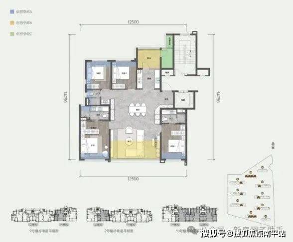 规划计容面积约125平户型,不仅是大横厅+四房,还做了南向双套房设计。