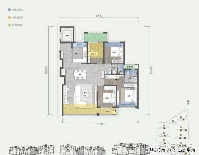 不可思议的是,项目规划计容面积约114平户型做成了标准四房+大横厅。