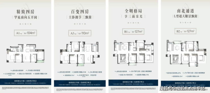 项目主力户型有104-143㎡三至四房,其中,104㎡户型做到南向15米长真5面宽,卧室全朝南,采光和通风佳,正3房+1可变空间,可根据家庭需求灵活调整功能,如设置书房、儿童房或储物间。全明格局,三面采光,次卧面积可达9㎡以上,能满足标准大床放置需求。127㎡带双阳台或家政间,南北双阳台设计增加通风和观景视野,正4房,两卫,独立餐厅可容纳大圆桌,动静分区明确。全屋约14㎡收纳空间,包括玄关、厨房、卫浴等区域,满足家庭收纳需求。整体户型综合使用率较高,空间利用率可观。