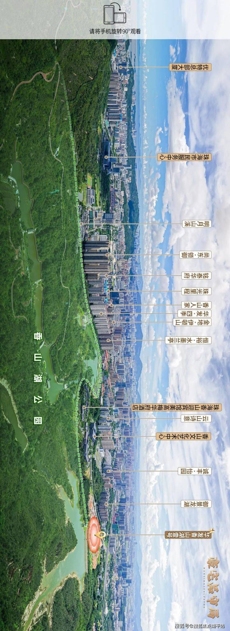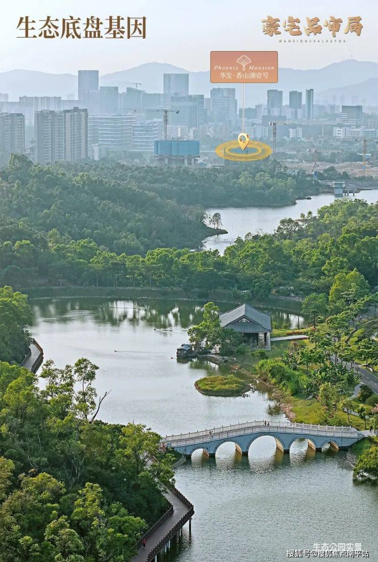 它背靠珠海市中心最大的生态公园香山湖公园。余脉山坳处形成的梅溪湖水库,距离项目只有百米不到;
