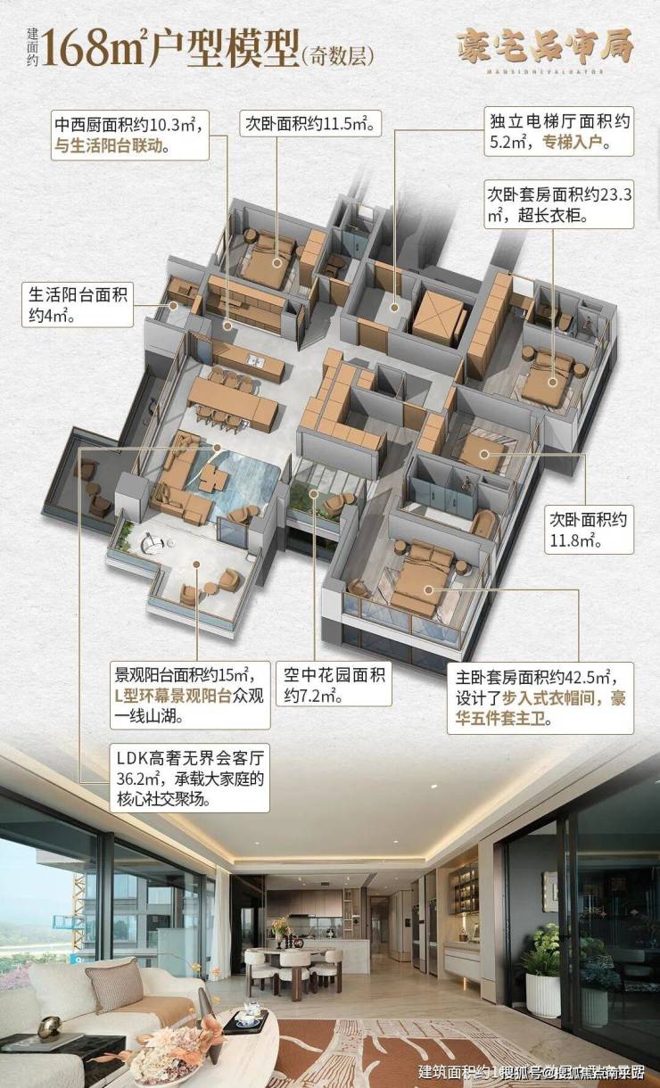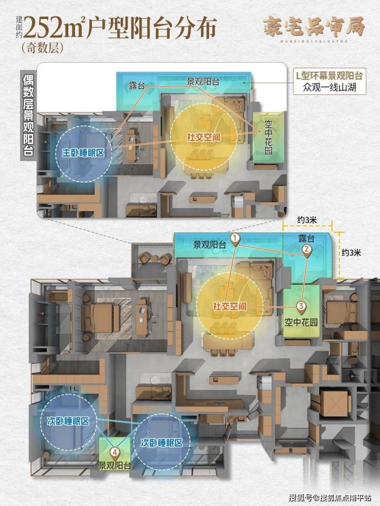 其中的王牌旗舰户型必然是 建面约252㎡的全景四化宅楼王。