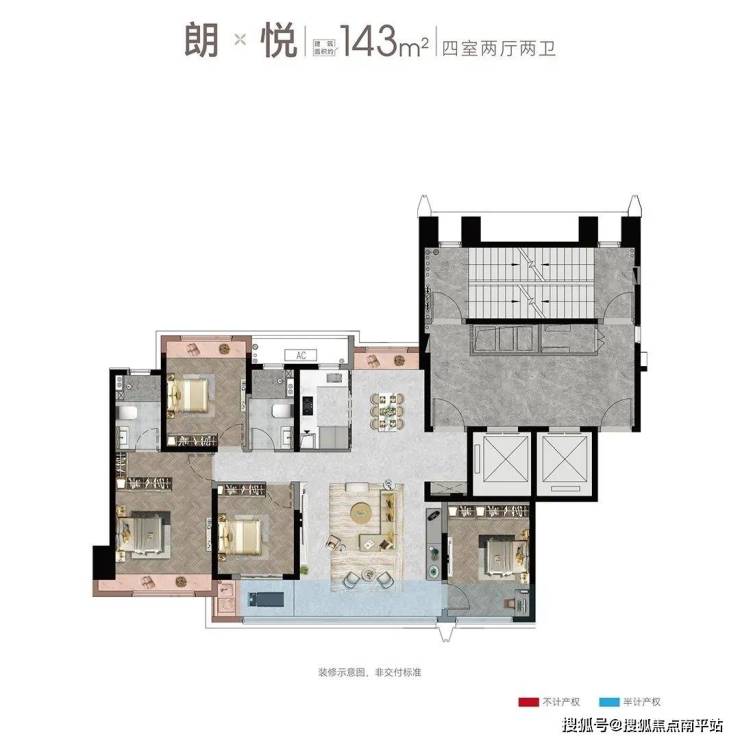 建面约143㎡四房两厅两卫