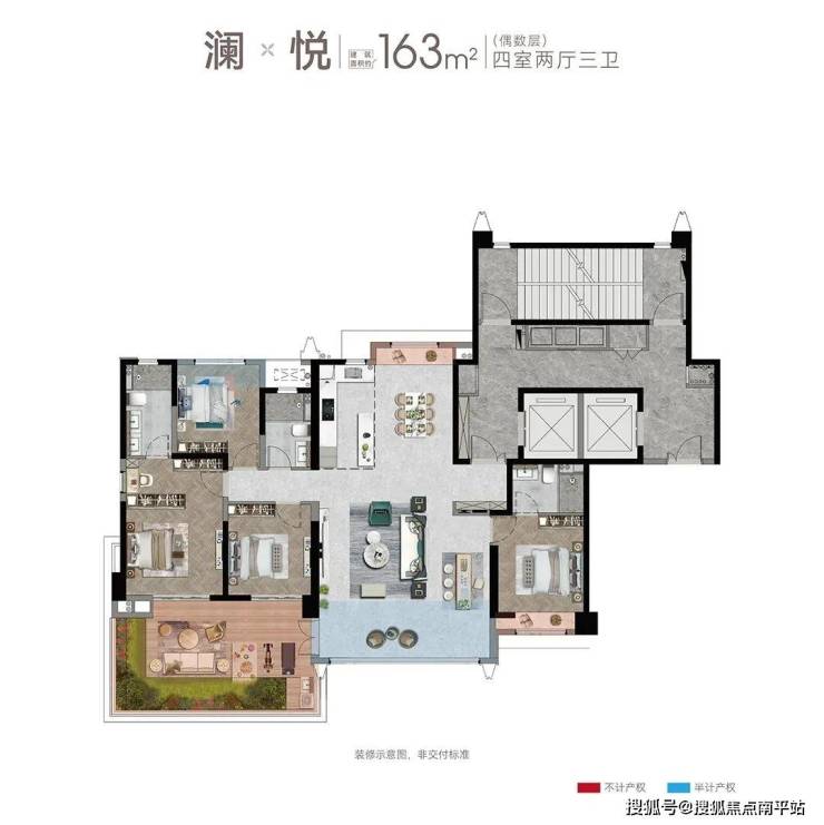 建面约163㎡四房两厅三卫(奇数层)