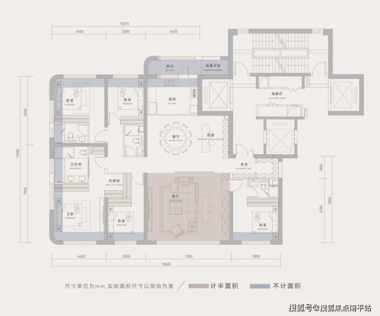 玺境|建面约139㎡户型,配备约8.5㎡专属前厅私梯入户,约112%超高使用率,含独立电梯厅在内,套内实用面积可达约156㎡.