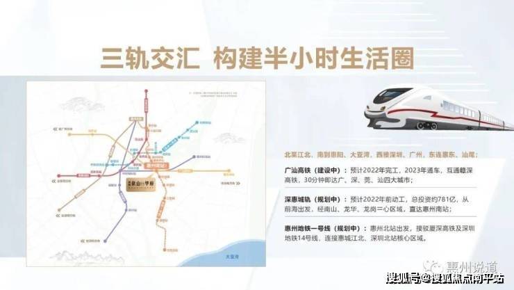 一站三轨道:深惠城轨、广汕高铁、惠州1号线(规划中)交汇于此,加速穗深惠城市生活,实现半小时湾区城市圈。