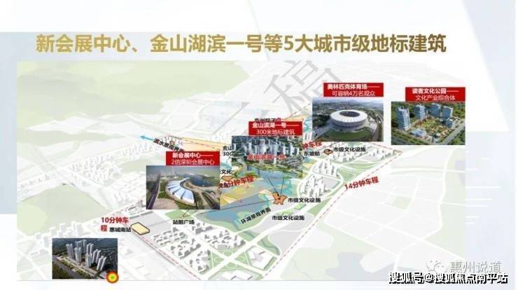 市政:80万㎡新会展中心,未来的文创中心—惠州院子(规划中)、奥林匹克体育中心、读者文化公园,惠州眼等,最具代表性的建筑都落于此地。