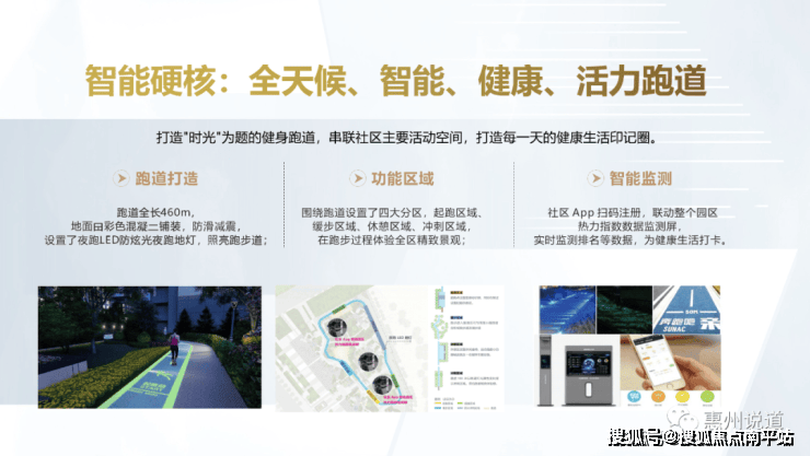 项目坚持以人为本的规划理念,创新实践“互联网+服务”新模式,全力打造“五大全健康社区”。打造“时光”为题的健身跑道,串联社区主要活动空间,打造健康生活印记圈。