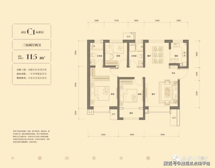 ·【高层C1】建面约115㎡(三室两厅两卫)