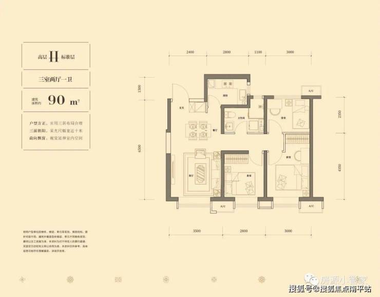 90平米三室:230-254万