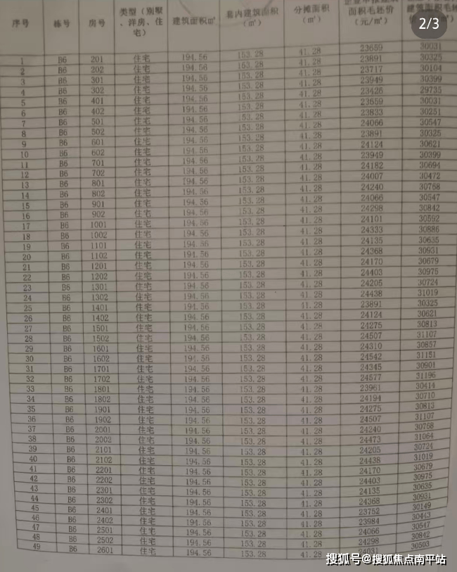 最便宜的2楼23659元/㎡,最贵的17楼24577元/㎡, 楼层价差不大