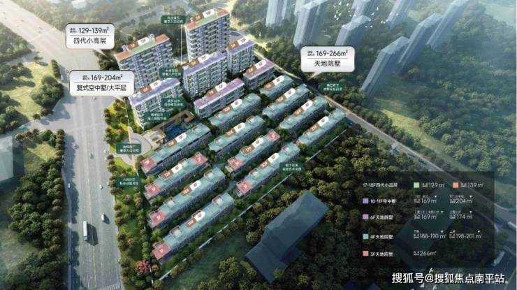 具体细分的话,则包括两栋129平、139平17层四代小高层户型,三栋169平10-11层复式洋房,两栋169-174平6层上中下叠以及12栋涵盖198-201层上叠和188-190平下叠的四层叠墅,另有8栋266平独栋别墅。这次的叠墅产品创造性的使用了一梯一户的仅上下叠的产品,并且上叠也有入户庭院,对于改善客群也是更加具有吸引力。而且从小高层到叠墅的楼栋排布遵循从北到南由高到低的原则,这样也充分的保证了每个楼栋的视野和采光。