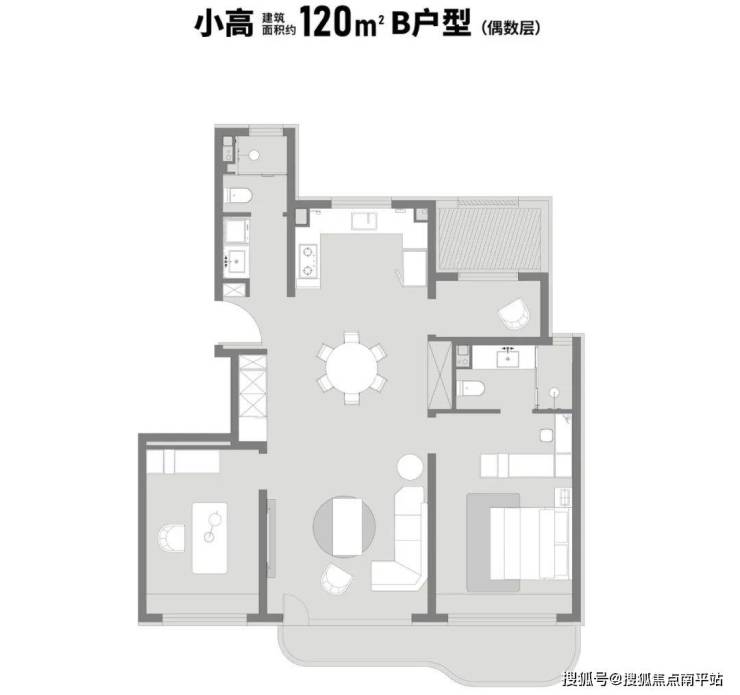 户型主要分为三款:建筑面积 约120㎡、146㎡全能三室和建筑面积 约186㎡奢阔四室。