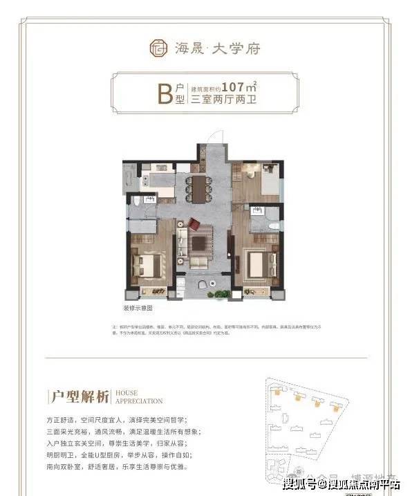 建面约107㎡-3室2厅2卫1厨 三面采光 方正舒适