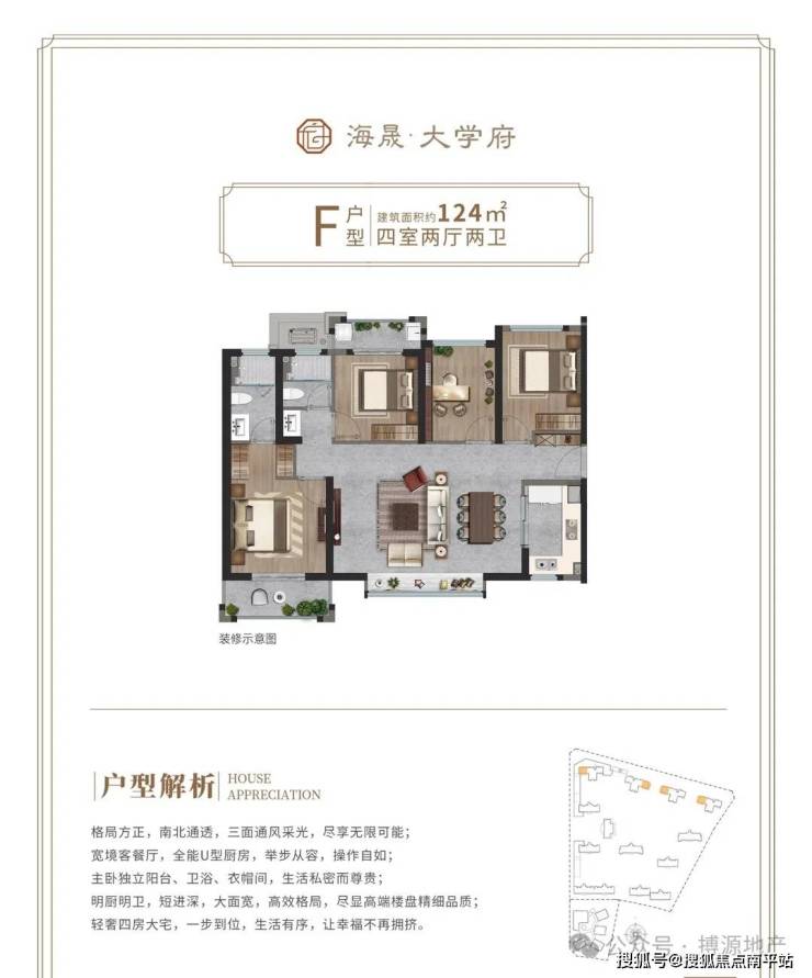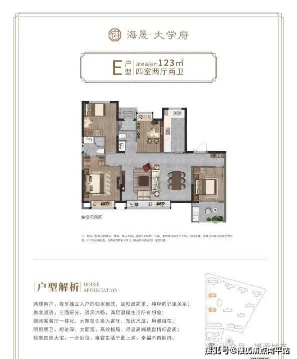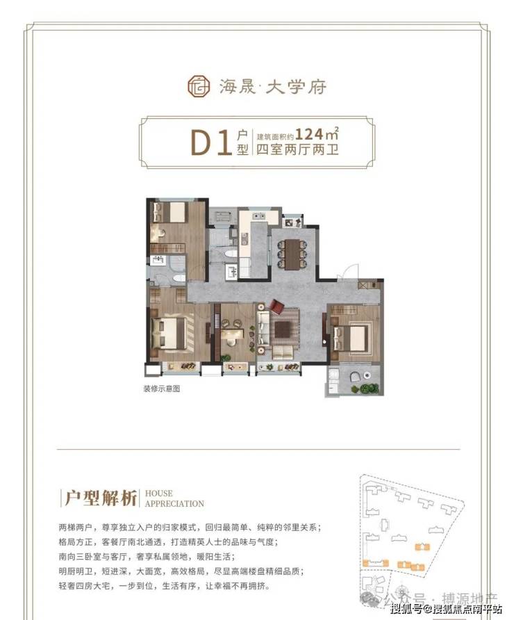 建面约124㎡-4室2厅2卫1厨 两梯两户 格局方正 南北通透