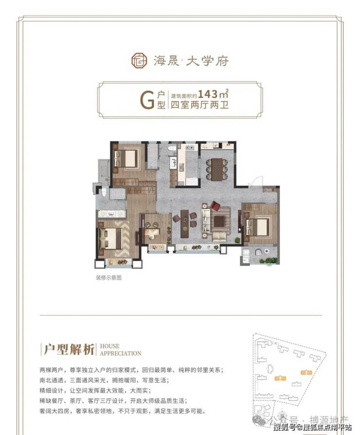 建面约143㎡-4室2厅2卫1厨 两梯两户 奢阔大四房 南北通透