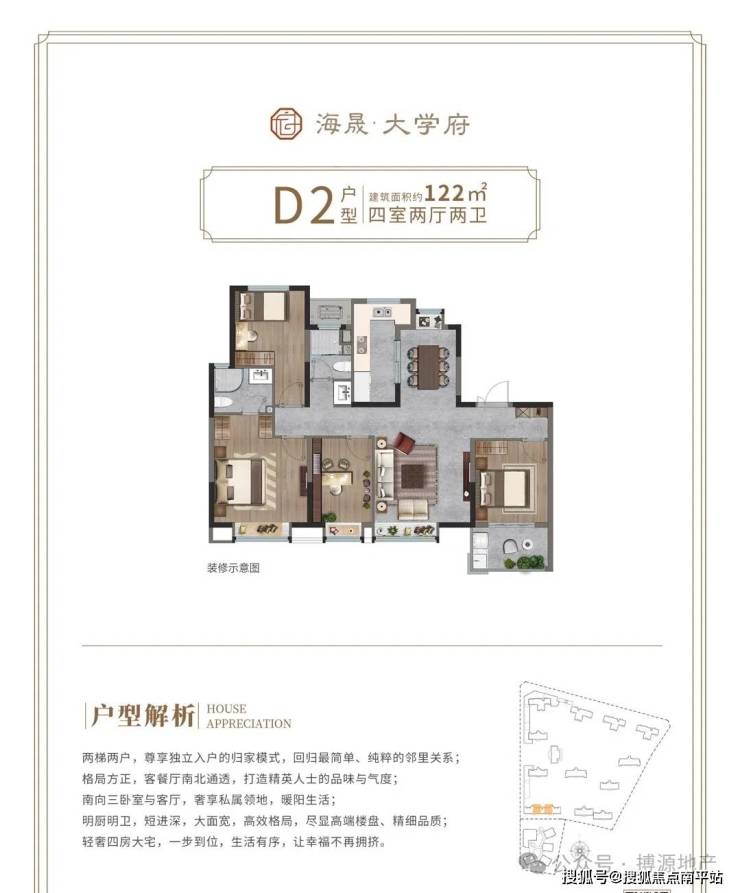 建面约122㎡-4室2厅2卫1厨 两梯两户 方正舒适 南北通透