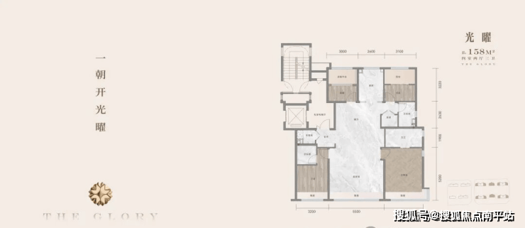 126-158㎡四居室户型,尤其是 126㎡户型填补了区域小面积四居的空白,158㎡洋房的四叶草户型,在空间利用上颇具巧思。