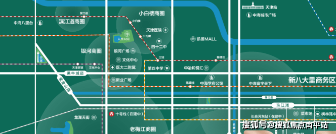 🟥医疗保驾护航:3公里范围内:南开大学附属医院、天津市第四医院、河西中医院;10公里范围内:天津市天津医科大学第二医院、天津医院、环湖医院、解放军464医院、肿瘤医院、海河医院6所三甲医院;1公里范围内:距离新梅江板块规划的三甲医院不足1000米,为家人健康保驾护航。