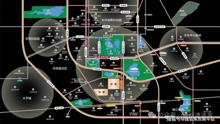 【区域配套】:南开奥体板块,坐享天津高端商圈崛起与成熟豪宅区;周边配套资源优势突出,四大公园环绕,交通,商业,九年一贯制学校及医疗等配套成熟。