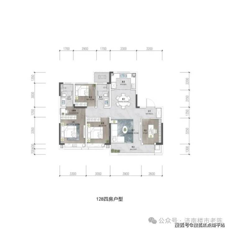 主力户型:建面约127-174㎡全四房