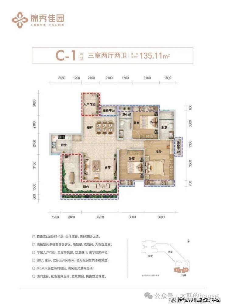 产品方正布局高利用率,高赠送,迭代升级设计,空间随需变幻;双卫设计、套房主卧、宽景阳台,以及更多🉑拓展空间,高性价比,高品质享受,满足二人世界到三代同堂的全生命周期不同阶段需求。