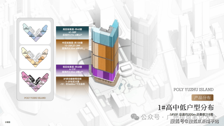 首推1栋大平层,户型为200-400㎡ 在规划上,保利鱼珠岛一共4栋建筑,1栋和2栋为大平层,大约是400多户。 首推的是1栋大平层,高50层,建筑面积大概分为200-300-400平。