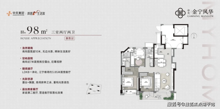 金宁风华四代宅打造“空屿露院”概念,建筑面积约98-143㎡,把立体生态、庭院空间注入生活之中,露台全不计入产权面积。
