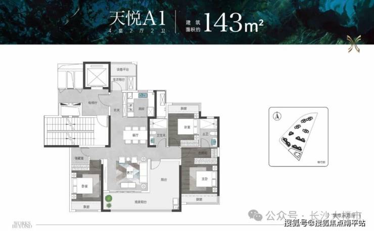三.遵循长沙户型新规,不同面积段产品均有空间改善优化,全系产品均有空中花园/阳台/设备平台等多处计一半面积/不计面积空间,层高3m。全系产品方厅化,打造多户型带270°转角飘窗、全景舱式阳台、连续采光面最大约25m,设置匹敌市场同类户型的十全收纳空间。