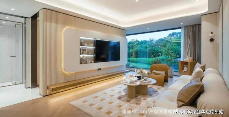 ·建面约114㎡2+1房——三开间朝南,充分考虑家庭成长与均好需求,主次卧开间皆超3米,客餐厅等面宽,营造约30㎡餐客一体空间,各功能区尺度均衡,南向景观阳台开间约6.8米(含设备平台),实现小户型大空间