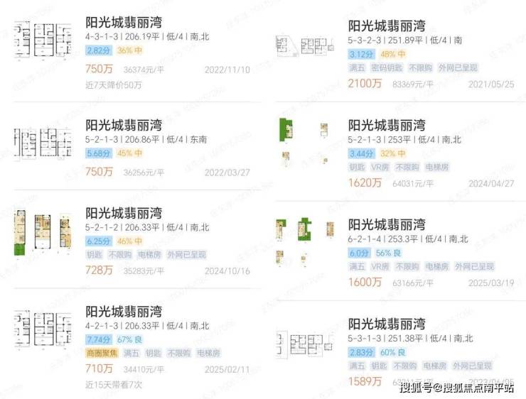 目前近岛片区,阳光城翡丽湾206平起步的别墅产品,挂牌价格710万到2,100万,就这个地段而言,对应的挂牌价着实有点尴尬,但仍然有客户在关注。