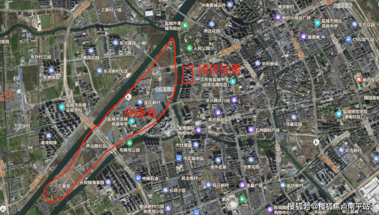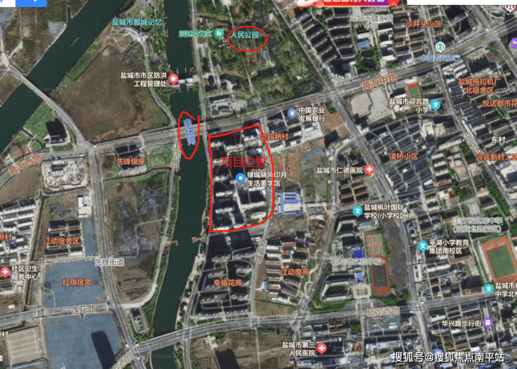 项目北侧是人民公园,西侧是串场河,环境比较好。拿地的时候,普遍认为是盐城一块压箱底的核心地块。实际开盘后,当地人并不认可这个位置,周边老旧小区多,学区并不好。