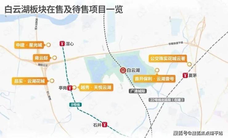 (品实云湖花城、越秀天悦云湖、招商电建雍云邸、中建星光城、首开保利云湖壹号、公交珠实花城云著)
