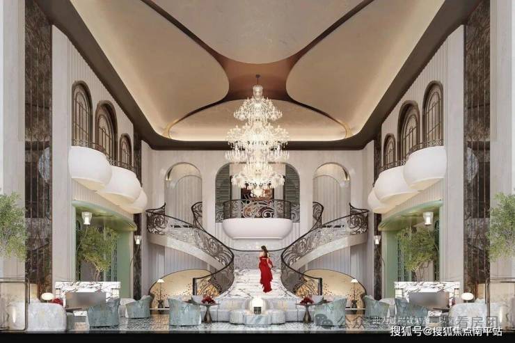 复刻厦门标杆项目建发・宸启瑞湖的海派美学基因: 花瓣式艺术吊灯如飘落花雨点缀空间, 南洋菱形釉彩地砖映出光影流转, Art Deco 线条与 珐琅彩玻璃交相辉映, 螺旋楼梯如当代雕塑般盘旋而上 —— 每一处细节,都是对卓越品位的精准表达。