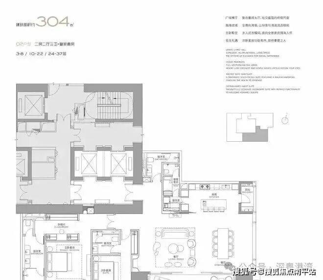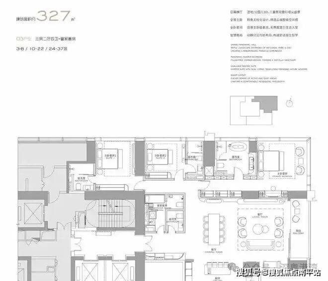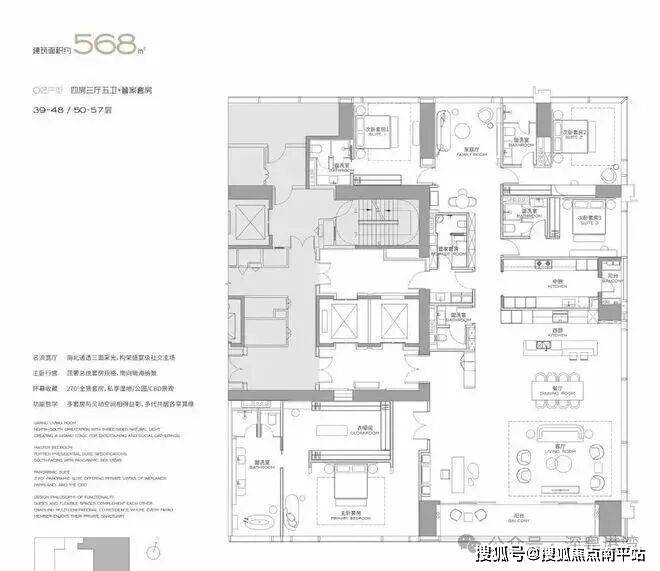 主力户型: 303㎡、327㎡、404㎡、568㎡等大平层,最大户型达1032㎡