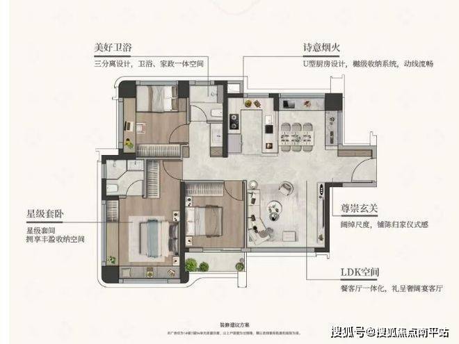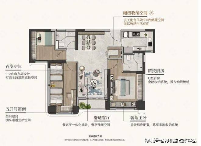 先看刚需首选的86㎡三房两厅两卫,这个户型直接打破了“小面积=局促”的刻板印象。三开间朝南+双阳台设计,客厅面宽3.6米,主卧还预留了步入式衣帽间位置。最惊喜的是800库收纳系统,玄关柜、阳台柜等细节设计,把小户型的储物痛点彻底解决,实际使用面积堪比市场上95㎡户型。双卫设计更是戳中多人口家庭需求,早上不用抢卫生间。