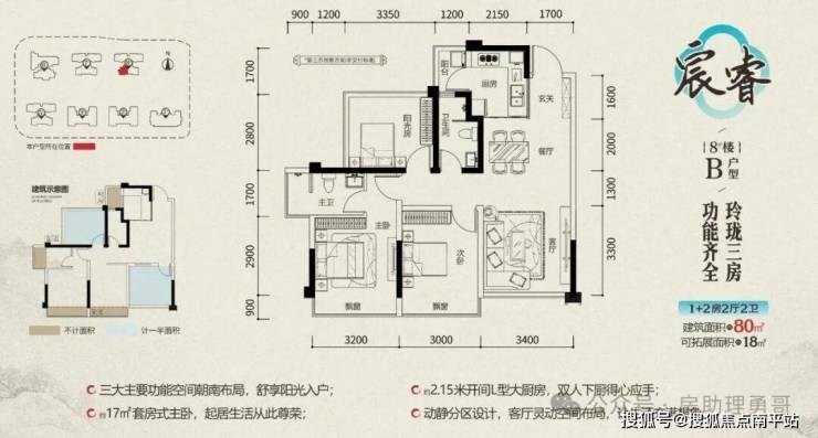 👉▌建面约80㎡功能齐全玲珑三房 (可拓展面积约18㎡)