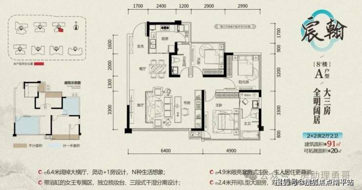 👉▌建面约91㎡全明阔居大三房 (可拓展面积约20㎡)