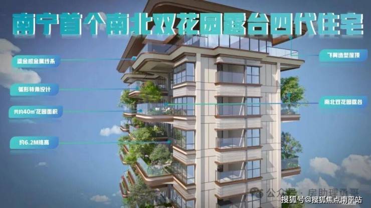南宁首个南北双花园四代住宅,户户约6.2米高空中庭院,总约40㎡全拓展面积空中花园,实现城央墅居生态体验。