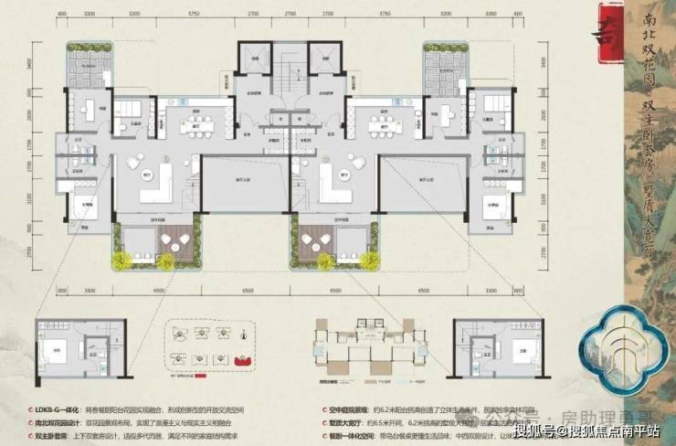 南北双花园产品“逆天”拓展率,实得面积约220㎡; 全新三代户型,超100%得房率